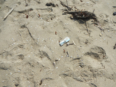 Below, a large empty and discarded glass beer bottle is left uncollected by LACDBH. Why?!.... Because LACDBH has not bothered to inspect the beach near the water's edge so that this public health and safety risk could be eliminated. It's a Saturday after all and the beach ought to be fit for the many beach patrons that flock to the beach, many of whom pay exorbitant beach parking fees and in return for that payment of hard earned dollars they get a filthy beach.